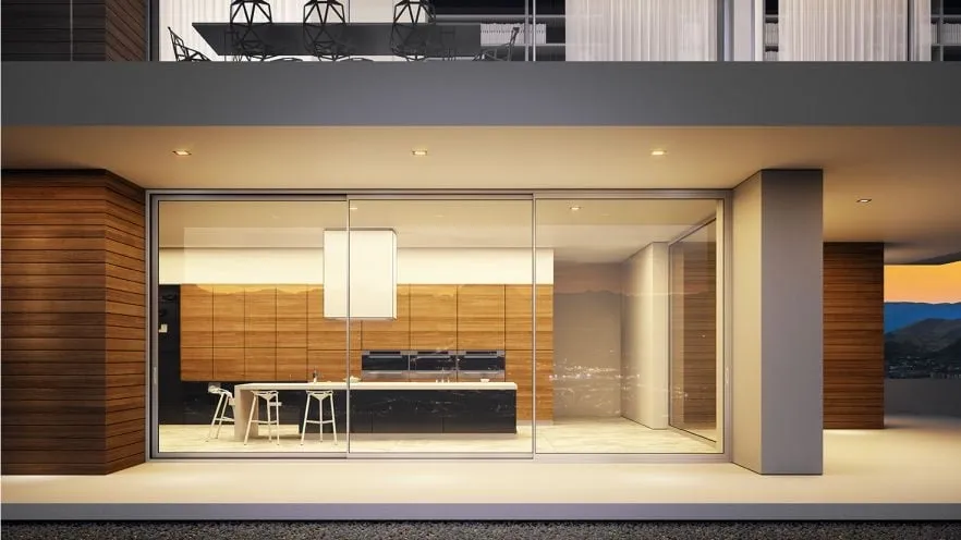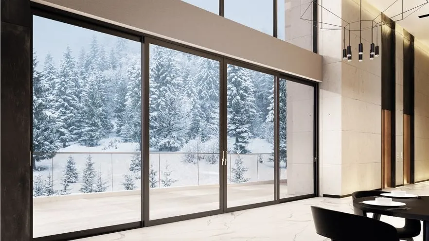 Dritare treshe me ngritje rrëshqitje me prag të ulët