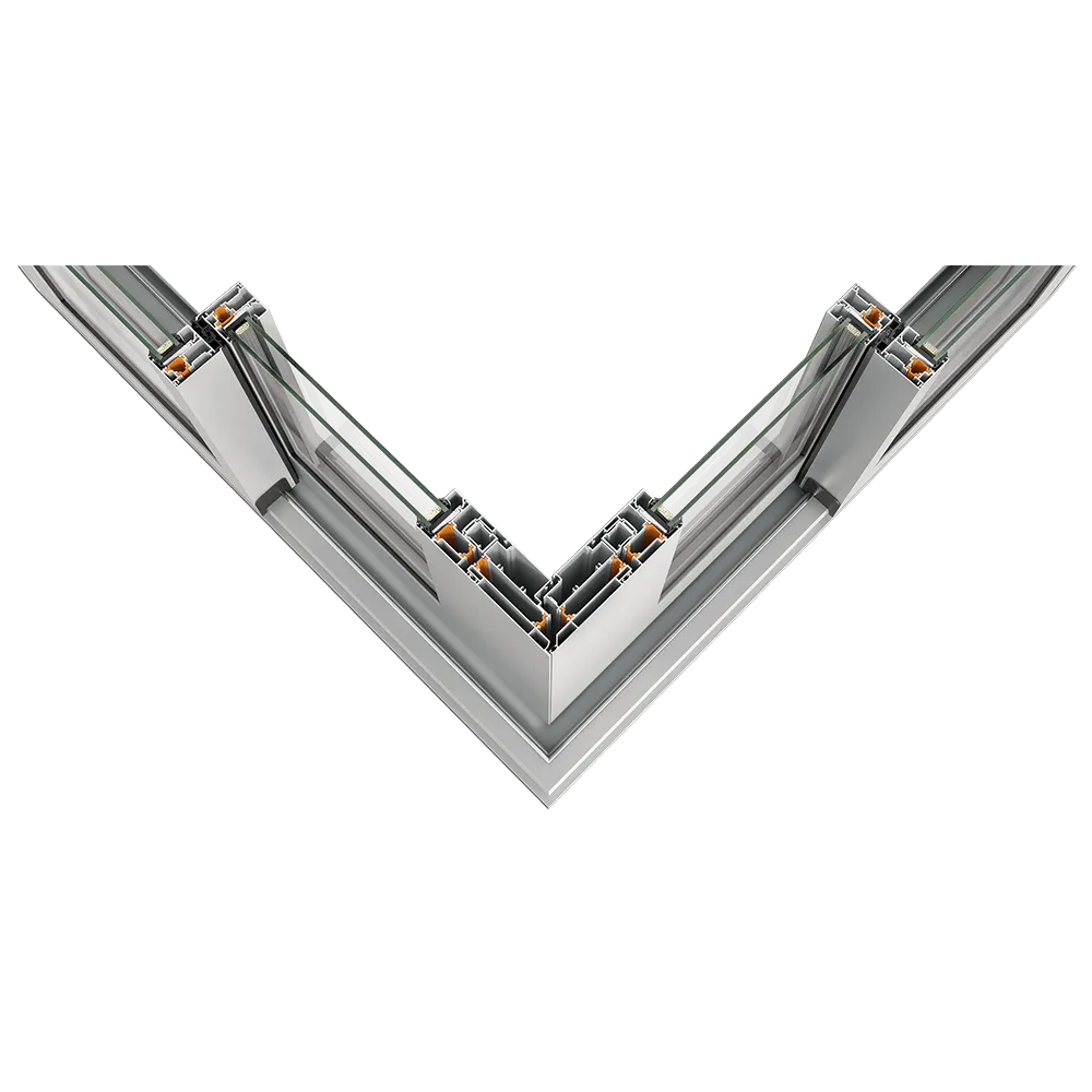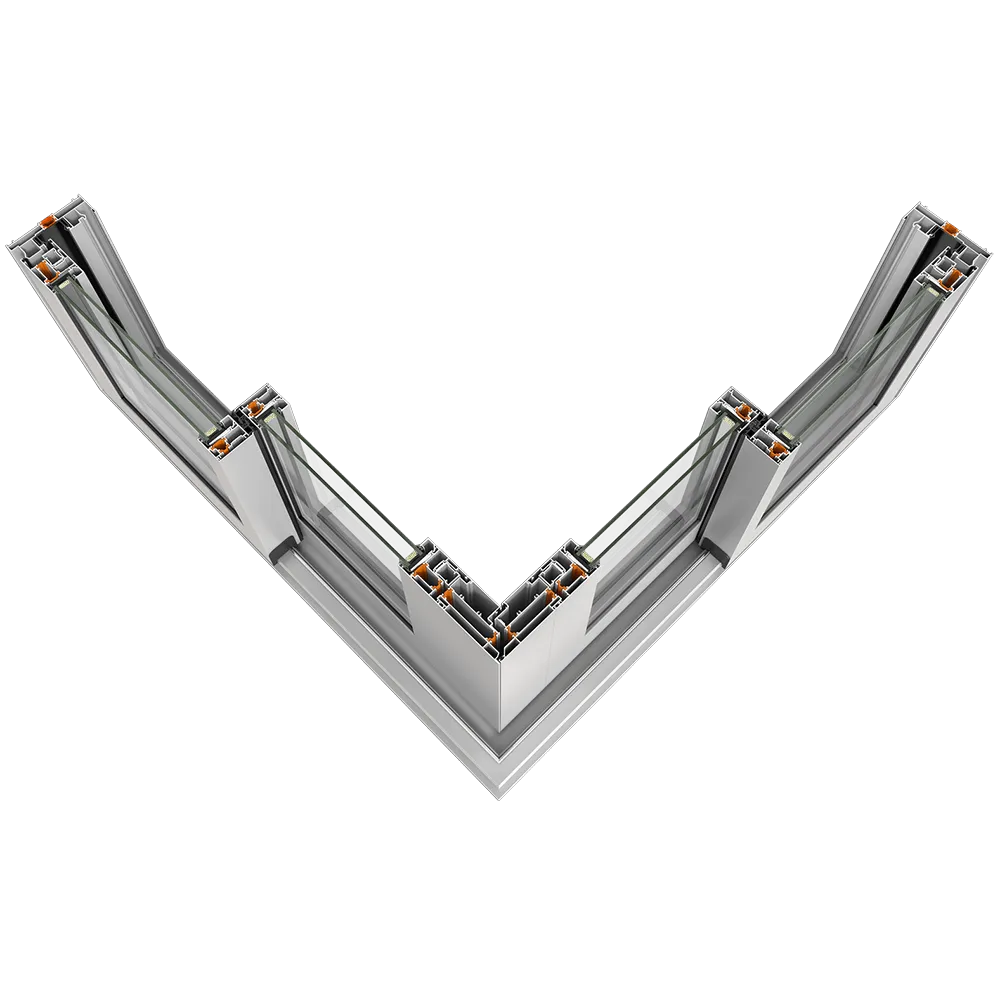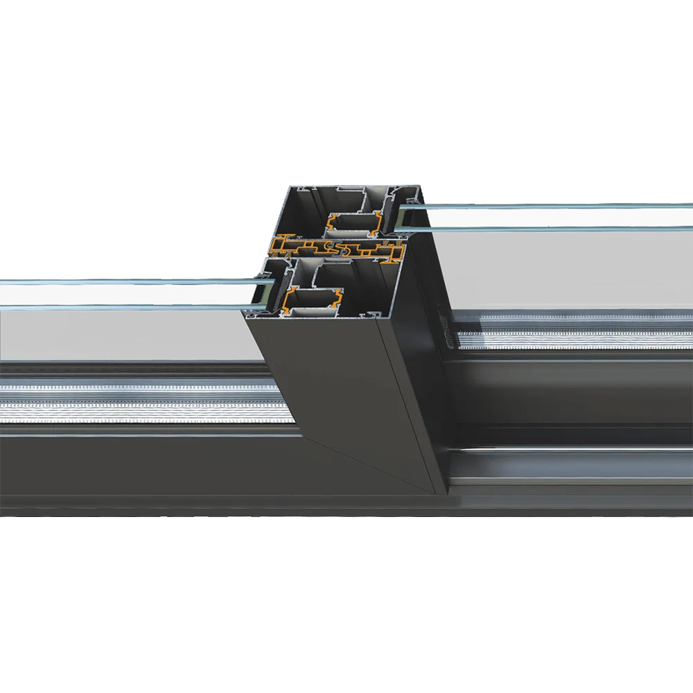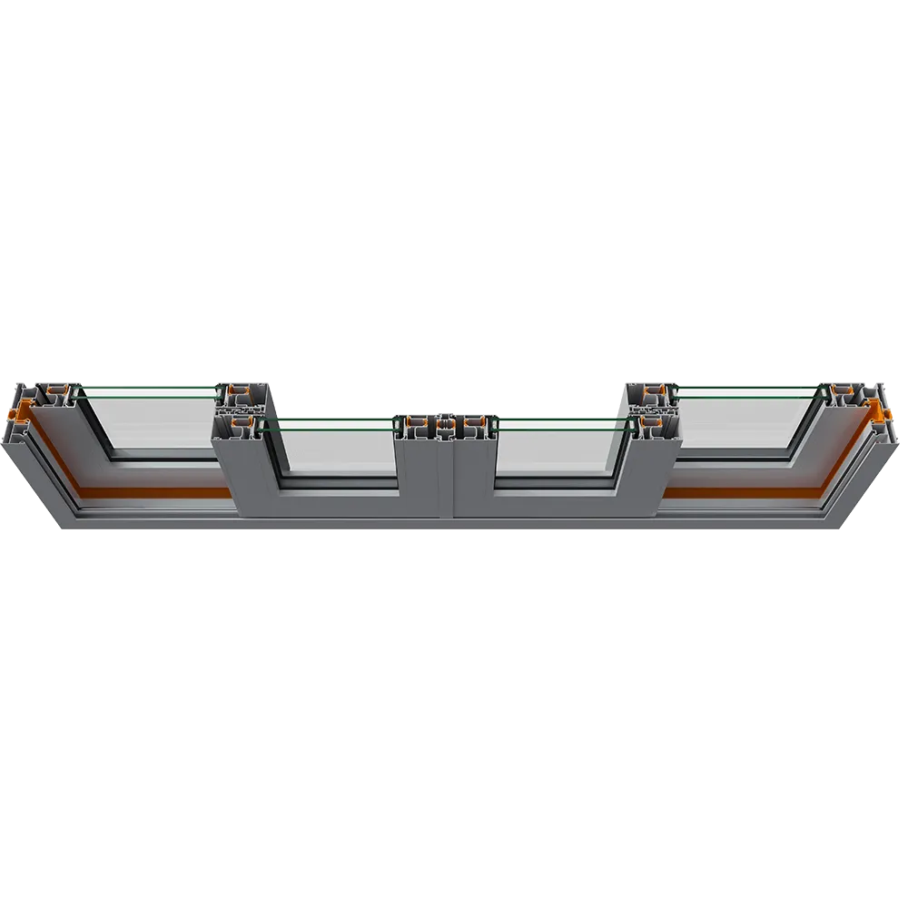 Dritare me gjashtë kanate me rrëshqitje horizontale me takim kokë më kokë në kornizë të ulët