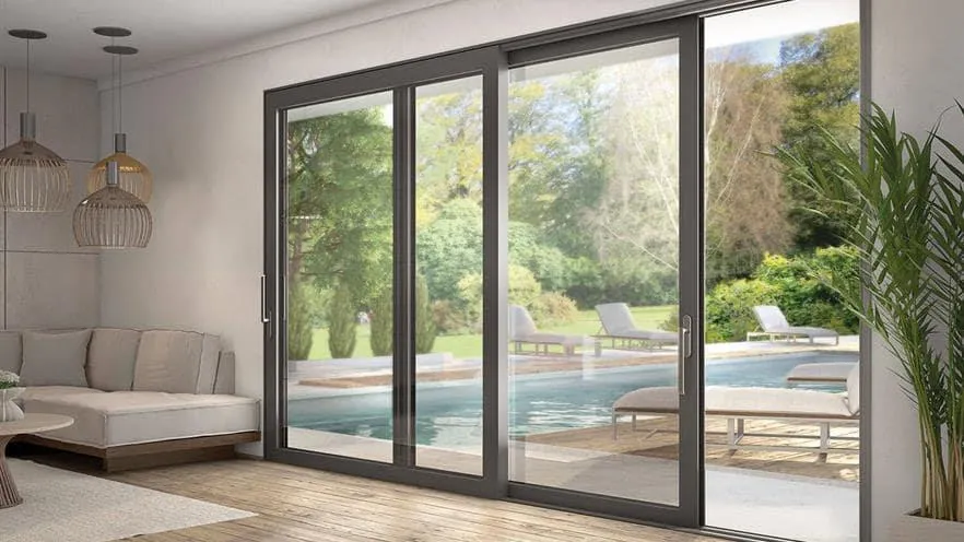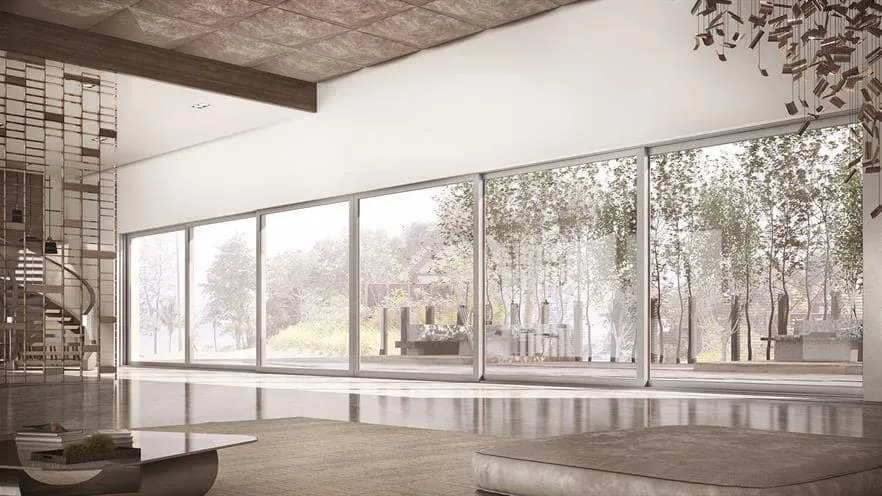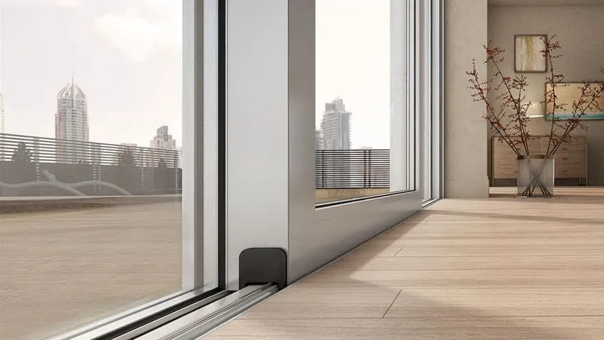 Dritare treshe me ngritje rrëshqitje me prag të ulët