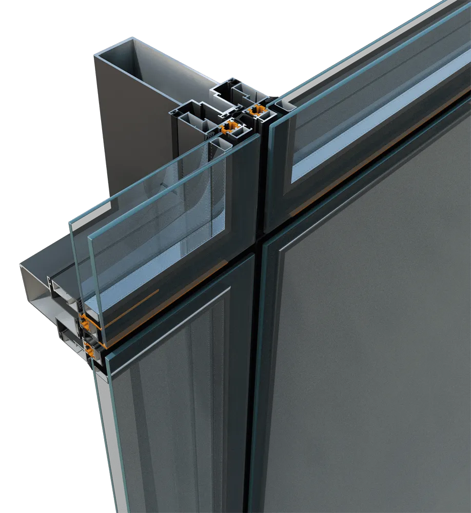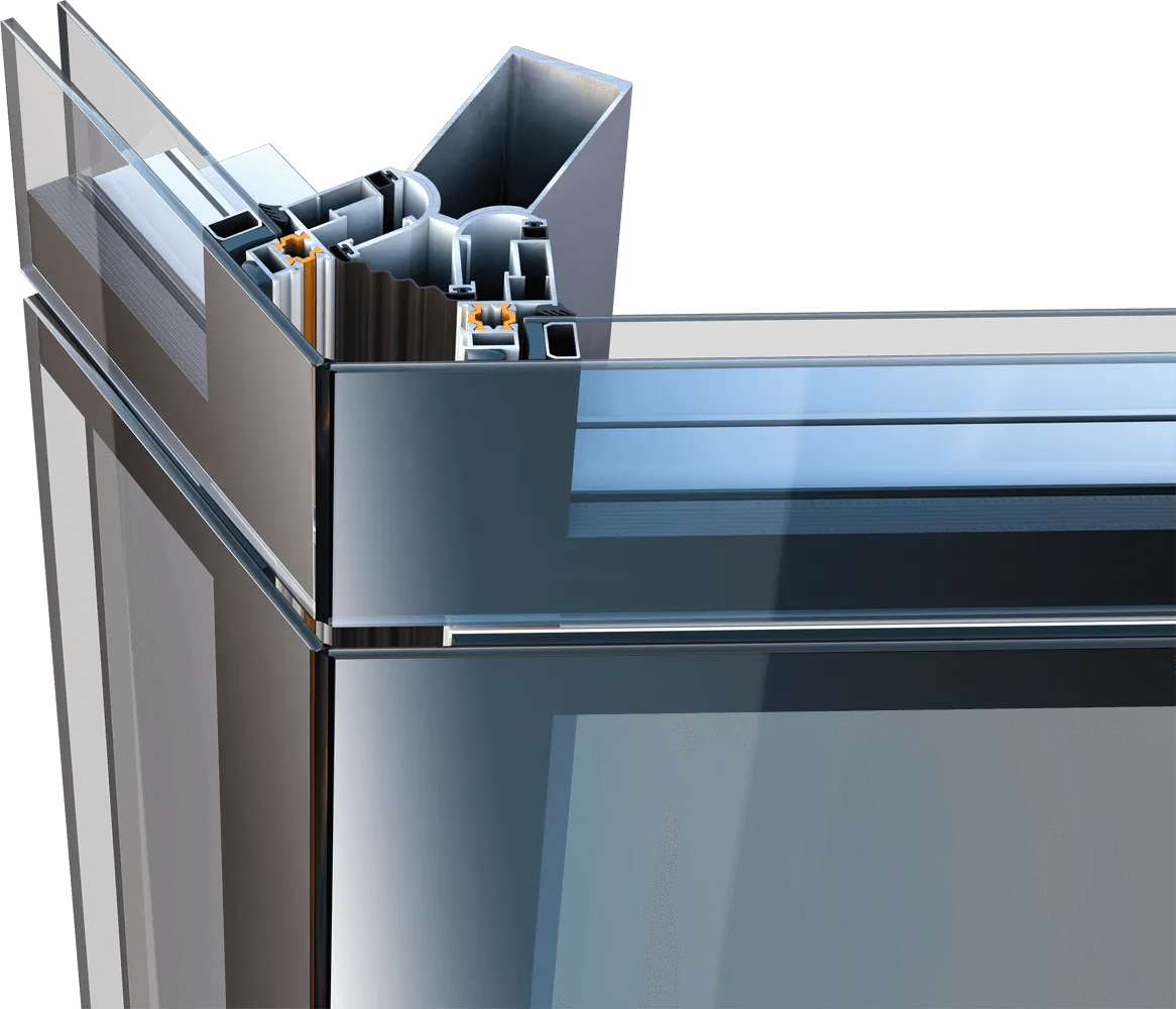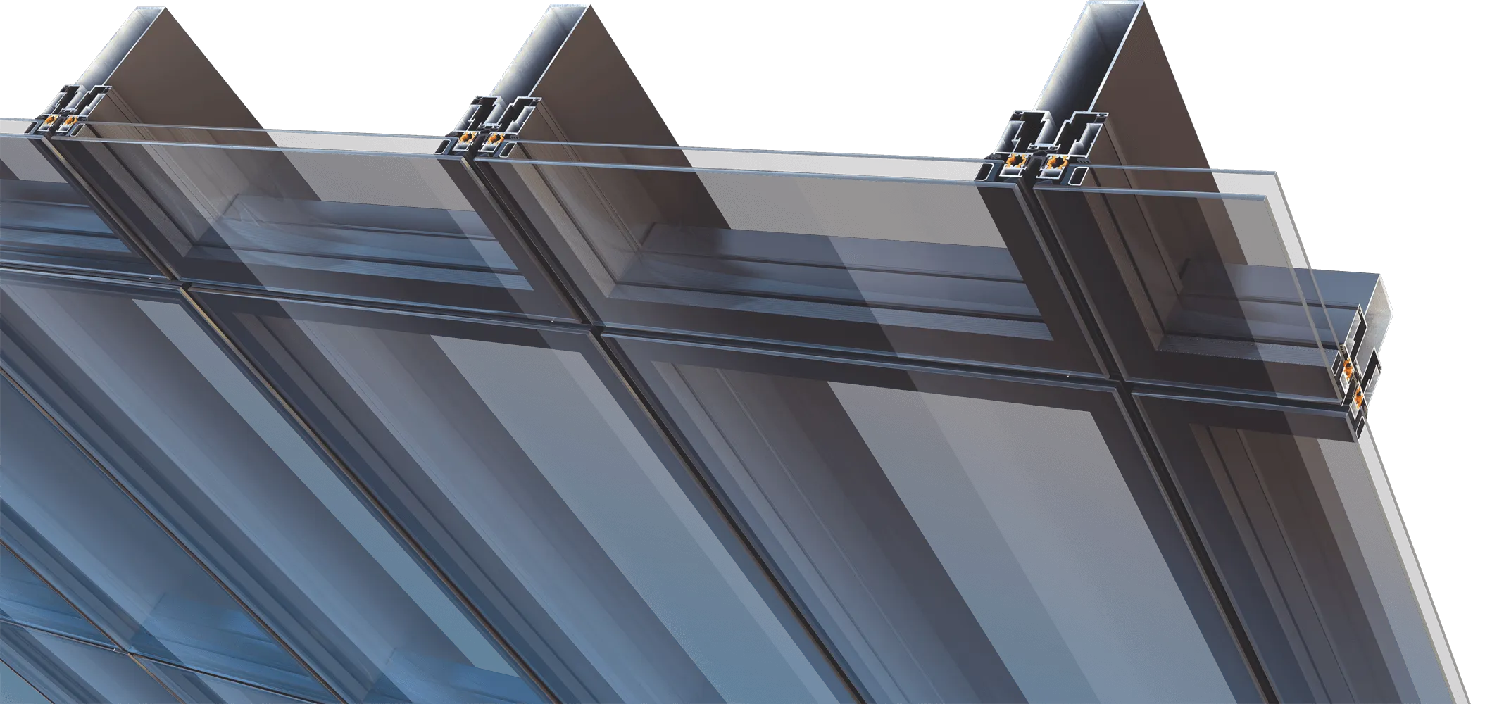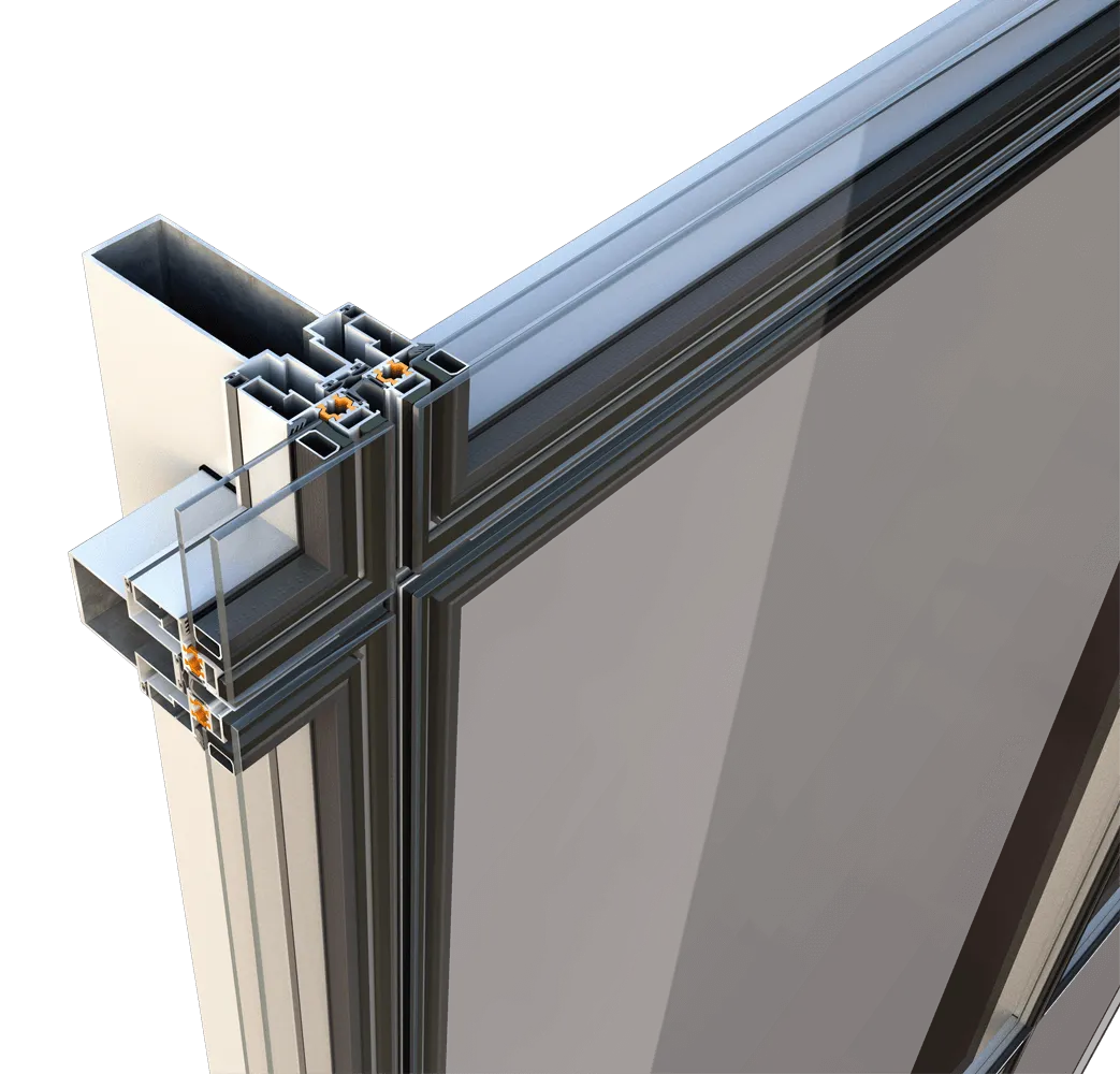 M4 is a thermal insulated system for structural curtain walls with hanging frames (stick type) for faster installation.