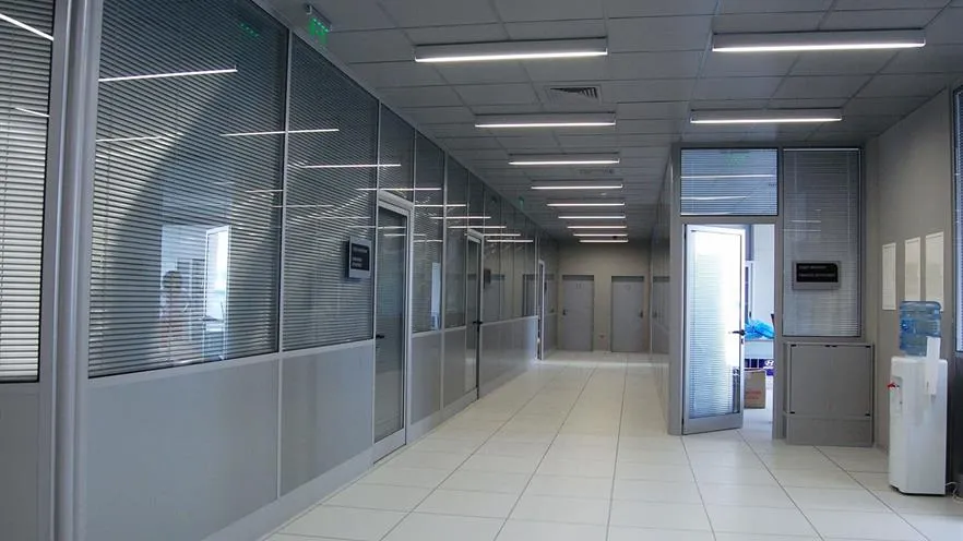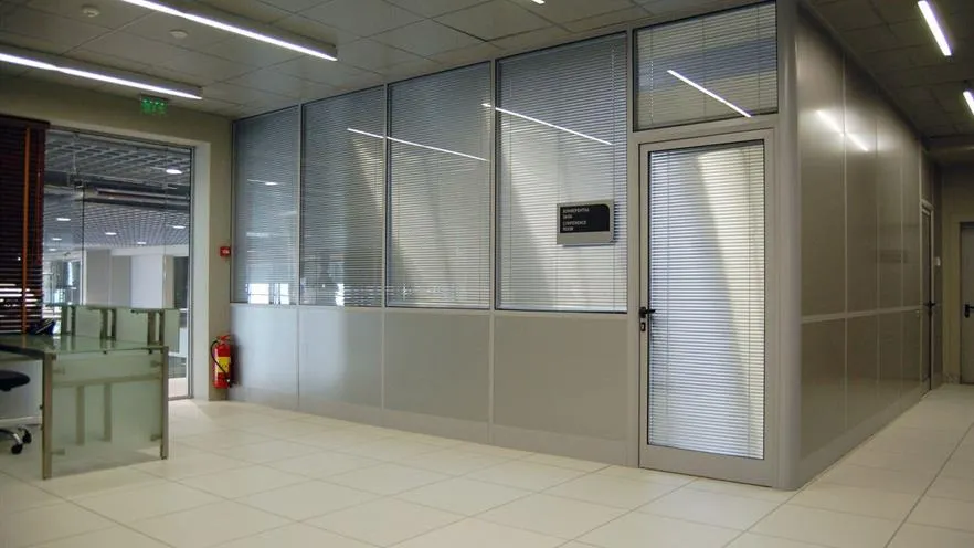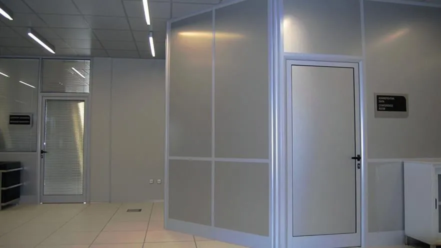 Fixed partition wall with door
